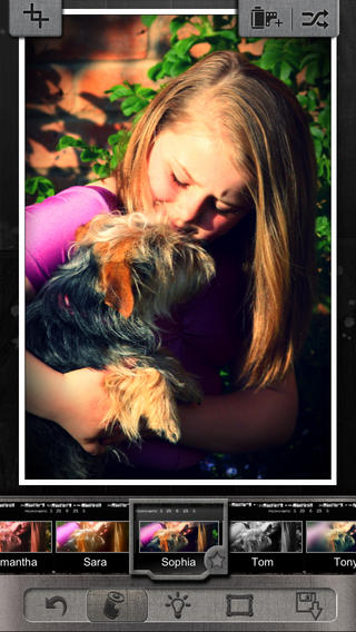 The different effects, overlay and borders all operate on a single tap with live thumbnails already showing you what your picture will look like before you tap on it. Choosing between the different effects, overlay or borders is a matter or sliding the selection bar horizontally at the bottom of the screen.