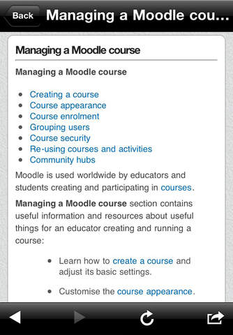 Here is an App that supports iPhone 5’s extra screen real estate. Moodle Mobile App is a Moodle client based on HTML5 that connects to your existing Moodle server. The focus here is on making content available offline and access to Moodle’s internal messaging system.