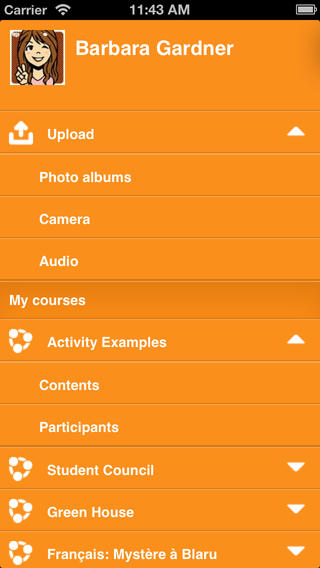 You can access all the courses that you are sign up to as a student, check out the contents and interact with other course participants in these courses. When accessing the information on the participants you also get the option of sending them a message, adding private notes about them and adding their details to your contact (on your device).