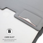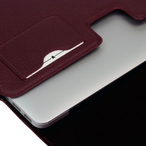 - Flap with soft magnetic catch over top loading sleeve keeps the MacBook secure and hides a business card holder.