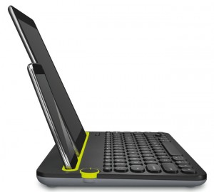 The Logitech K480 is a beefed up Logitech K380 keyboard. It has a bigger foot due to the built-in device cradle for tablet or smartphone or both (depending on size). Give that it needs to prop-up devices, it is fairly weighted at 820 grams to ensure that it does not tip over. There are 12 integrated media and shortcut hot keys and an easy switch dial. The grey or yellow accent depending on the body colour is a nice touch. Even with the onboard cradle it measures no more than 20mm thin, perfect for slipping it in the bag. If you would rather have a lighter and smaller Logitech keyboard, check out K380 (423 grams) or K810 (337 grams) or the super portable Logitech Keys-to-go